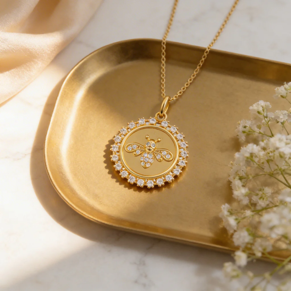 Elegant Golden Honeybee 925 Sterling Silver Pendant